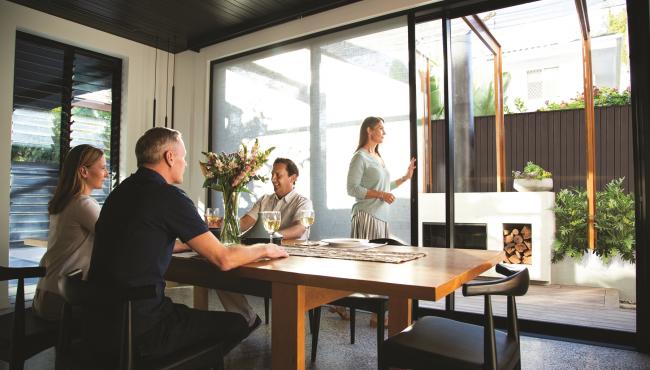 La moustiquaire et le store S4 permettent aux propriétaires de grandes ouvertures de porte de profiter du luxe de la vie intérieure-extérieure sans les compromis traditionnels - insectes, éblouissement et perte d'intimité. Fonctionnant du bout des doigts, la technologie unique d'équilibrage des charges de Centor permet aux moustiquaires et aux stores de glisser en douceur sur toute l'ouverture de la porte pour s'arrêter sans effort à la position souhaitée. Lorsqu'elle n'est pas utilisée, la moustiquaire ou le store se rétracte discrètement dans le cadre, ce qui permet de ne pas gêner la vue sur l'extérieur tout en la protégeant des dommages, de la poussière ou de la saleté. Ceci est particulièrement important pour un produit utilisé de façon saisonnière.